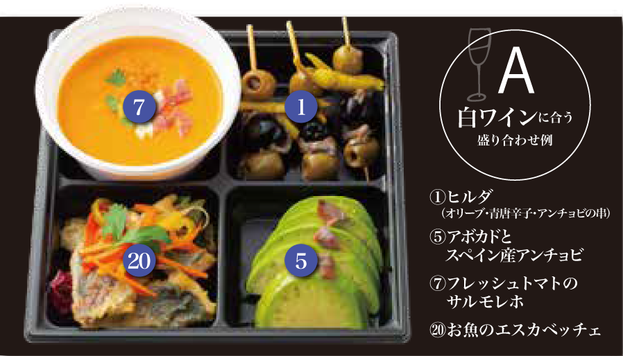 ① ヒルダ(オリーブ・青唐辛子・アンチョビの串)